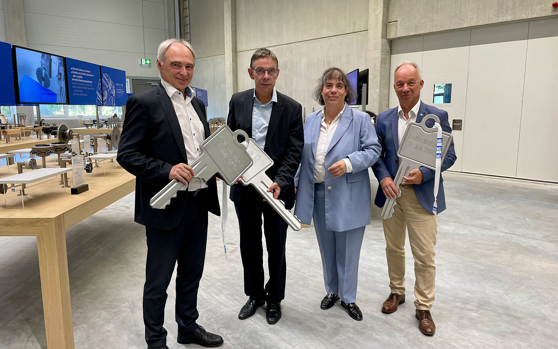 Im Beisein zahlreicher Gäste aus Politik, Wirtschaft und Wissenschaft fand auch die symbolische Schlüsselübergabe von Frau Dr. Brucklacher an die Geschäftsführungen der drei Schwesterkonzerne statt – ein bedeutungsvoller Moment, der den offiziellen Start eines neuen Kapitels markierte. Mit dem feierlichen Festakt in der Leitzstraße 1 unterstrich die Brucklacher Group einmal mehr ihre nachhaltige, weltweite Wachstumsstrategie und ihre über Generationen währende, regionale Verbundenheit.