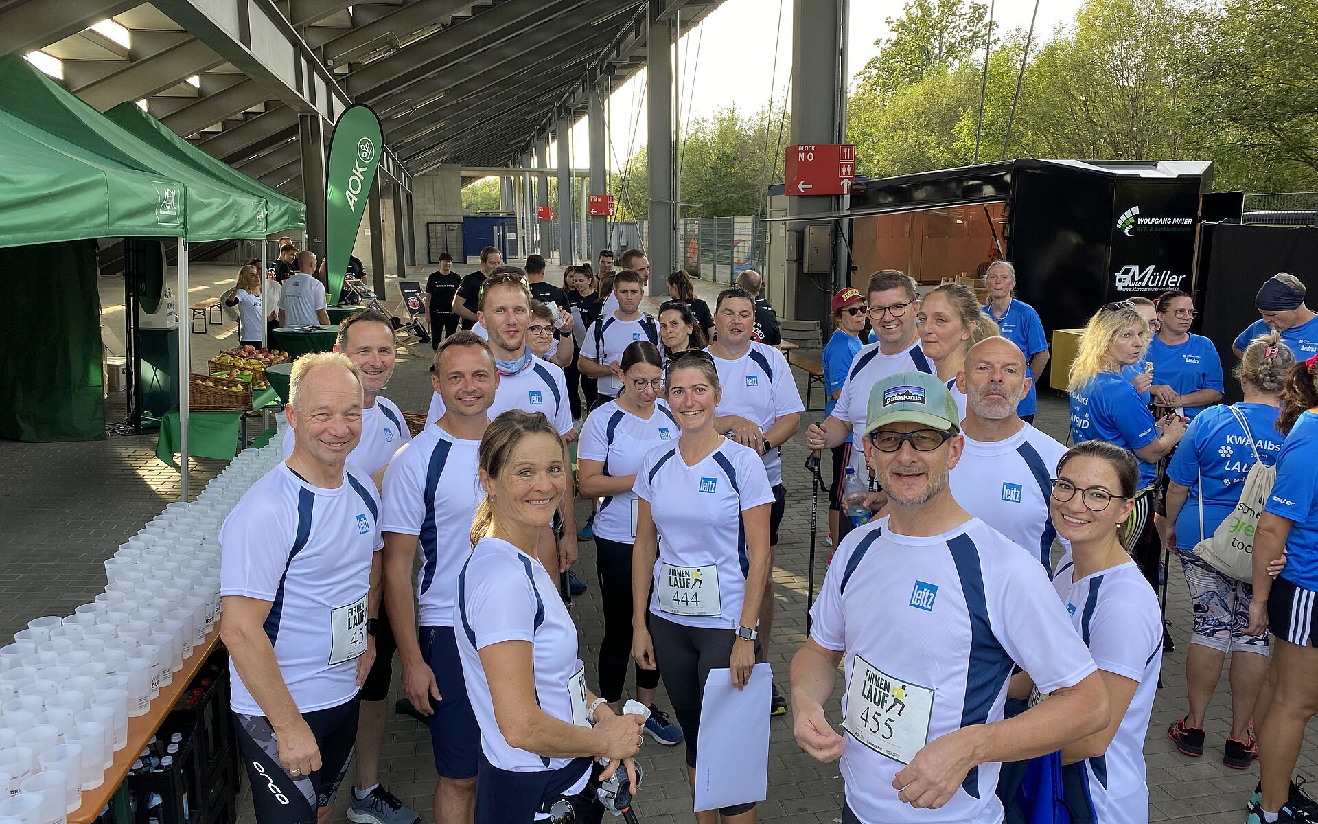 Für Leitz zeigten an diesem Tag dreizehn Mitarbeiter gewaltigen Ehrgeiz auf der 6,5-km-Walkingstrecke. Sieben Firmensportler wagten sich auf die 9 Kilometer lange Laufstrecke.