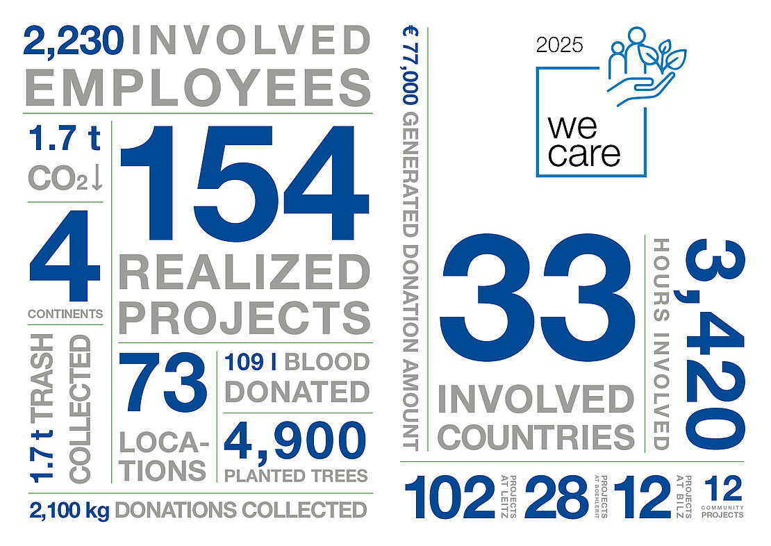 In order to make the momentum of WeCare and the team spirit tangible, WeCare campaign weeks have been held worldwide at all locations of the company groups since 2022. Through the cooperation of the employees and the financial support of the individual local companies, another positive sign of social responsibility was thus set.