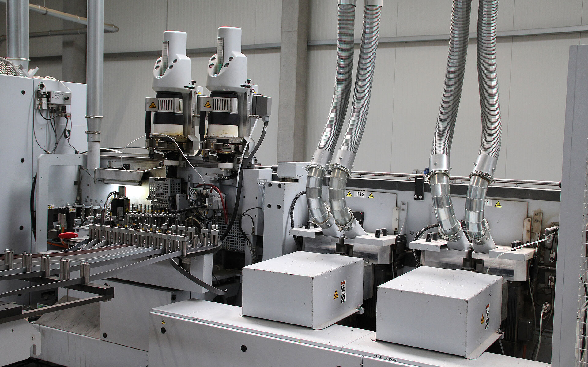Das war der Stand bis 2017, dann erfolgte ein Wechsel zum Maschinenlieferanten Homag. „Mit dieser neuen Anlage sind wir damals mit dem Vierfach-, also Quattrofügen gestartet“, berichtet Hunger. „Hier wurde vor dem bestehenden Dreifachformatsystem noch ein zusätzlicher Fräser installiert, der die Bearbeitungszugabe im Gleichlauf bis auf 5/10 Millimeter zur Leimfuge vorfräst. Erst danach formatieren wir, mit dem Dreifachfügen die eigentliche Leimfuge. Dies haben wir auch bei der nächsten Maschinenentwicklung in 2019 beibehalten.“