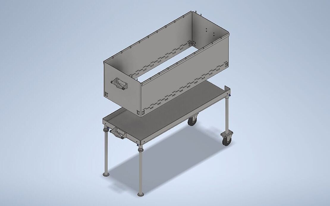 Im technischen Produktdesign wurde der Grill unter der Berücksichtigung von verschiedenen Anforderungen konstruiert: