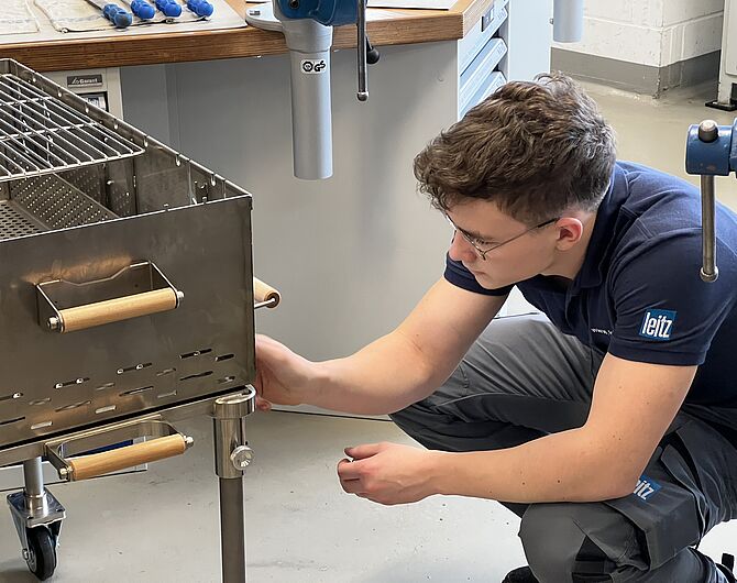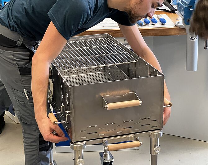 Die Leitz Auszubildenden haben die Aufgabe bekommen, zusammen einen Grill für die Feierlichkeiten des Unternehmens zu bauen. Dieser wird dann auch beim alljährlichen Grillfest der Lehrlinge zum Einsatz kommen.