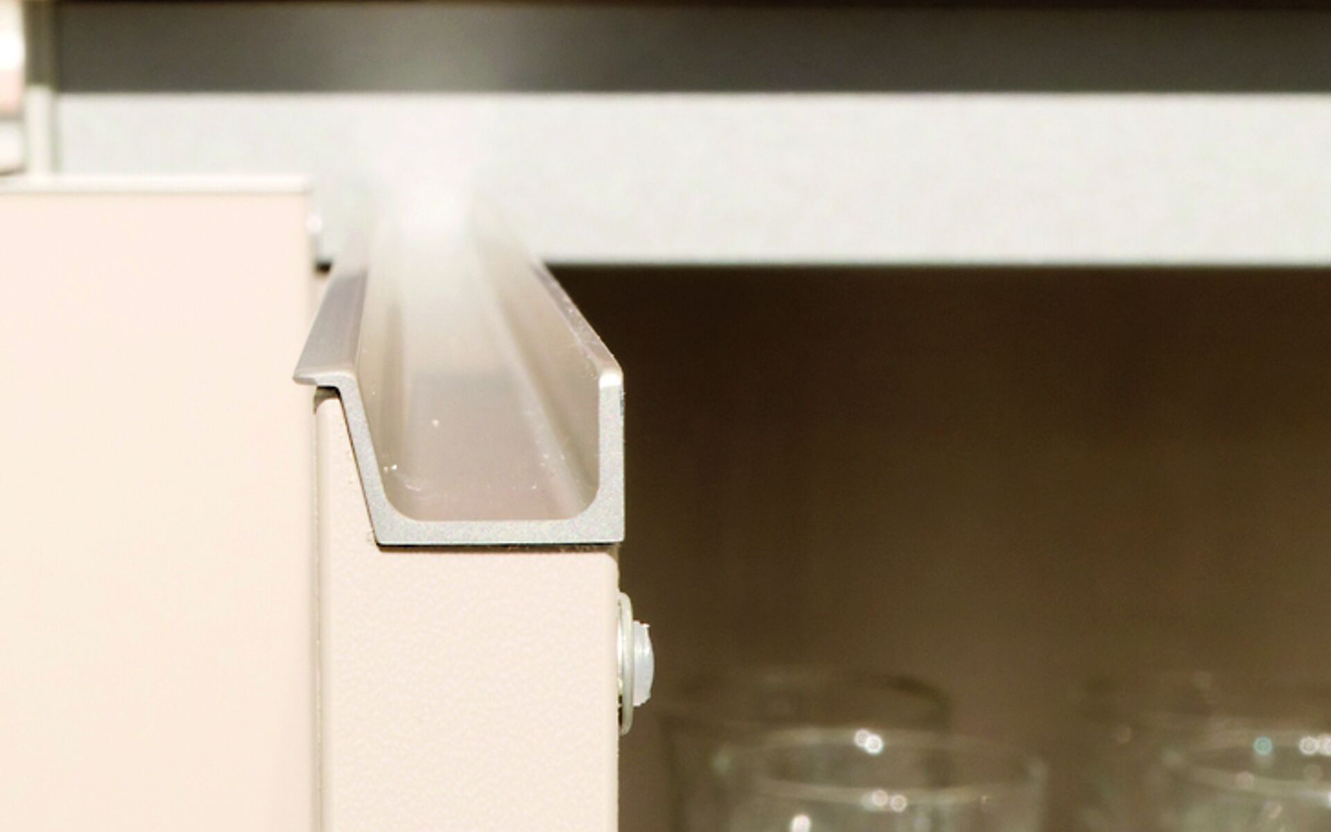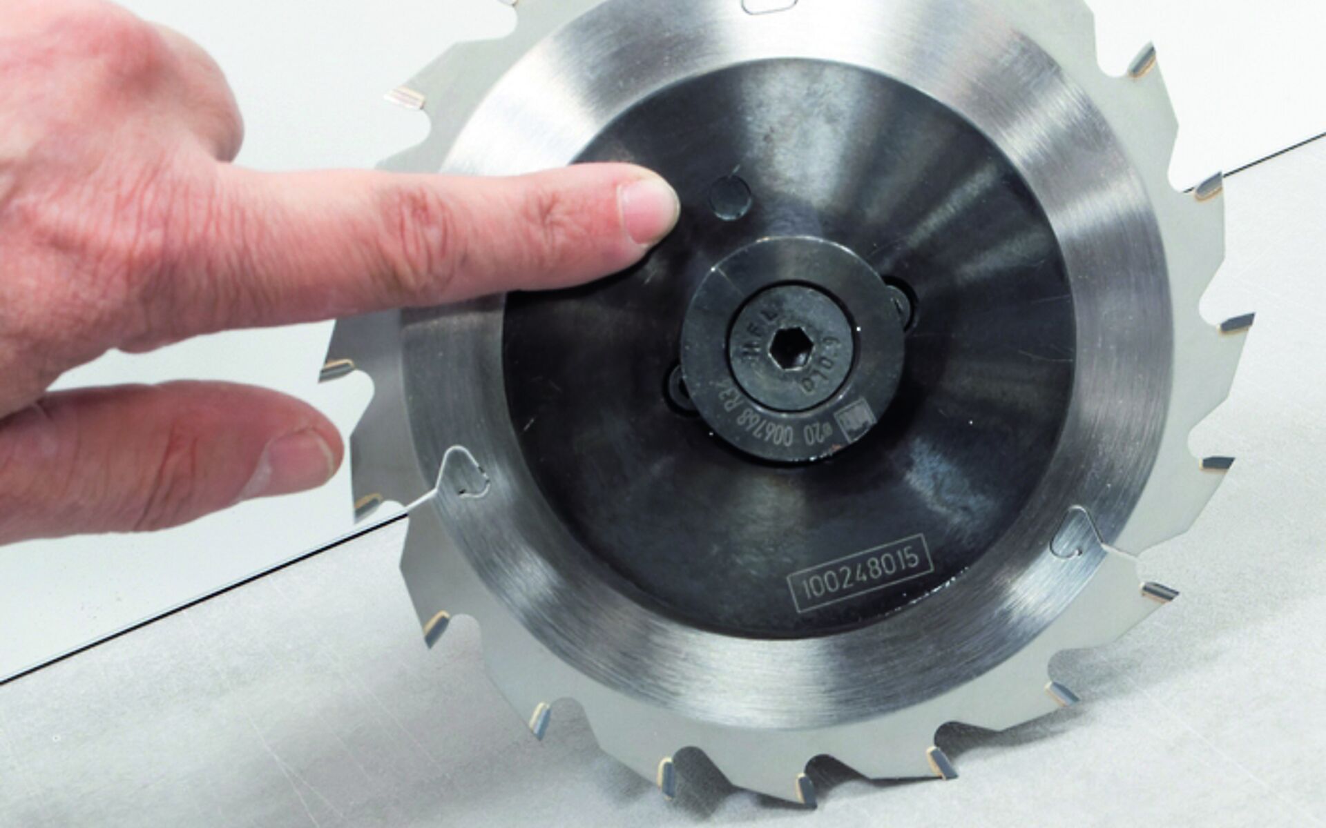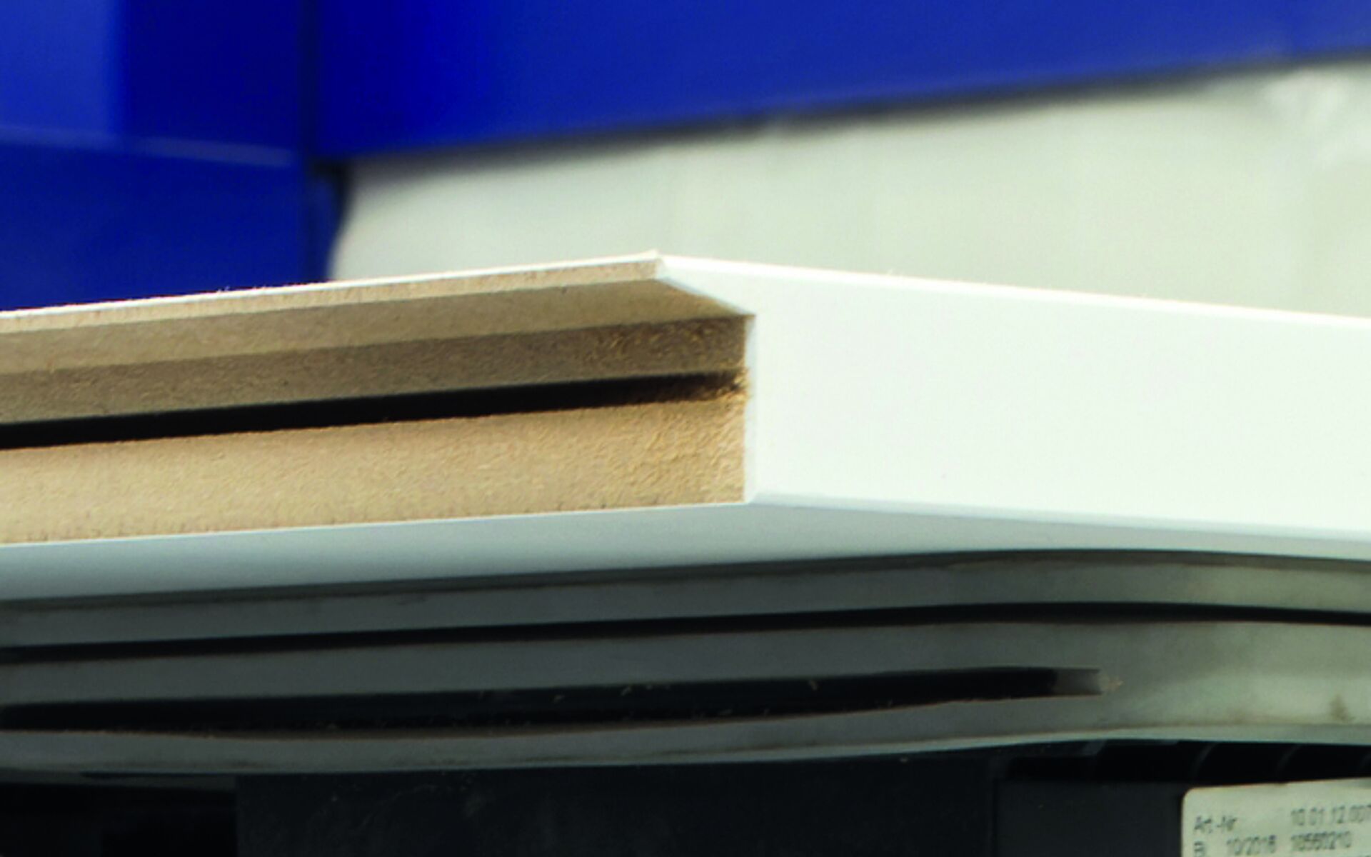 Matthias Tost travaille sur une CNC chez Ballerina Küchen à Rödinghausen, près de Herford, et découpe des poignées en aluminium pour en faire des faces. L'ingénieur en technologie du bois place une face après l'autre et attend le cycle de programmation de 1 minute et 40 secondes. Auparavant, cette opération prenait presque deux fois plus de temps. Un outil triple de Leitz permet désormais de gagner 40 % du temps. L'avant doit être pourvu d'une feuillure continue avec un flanc incliné ainsi qu'une rainure d'entrée et de sortie pour la barre du harpon. Pour éviter les arrachements sur les bords, une fraise à profil doit pénétrer dans la pièce des deux côtés en contre-rotation. Pour un même profil, la machine a donc besoin d'un outil tournant à droite et à gauche. Avec la scie à rainurer, le magasin d'outils doit être chargé de trois outils différents. Chaque outil doit être inséré dans la broche principale une fois par cycle et échangé à nouveau.