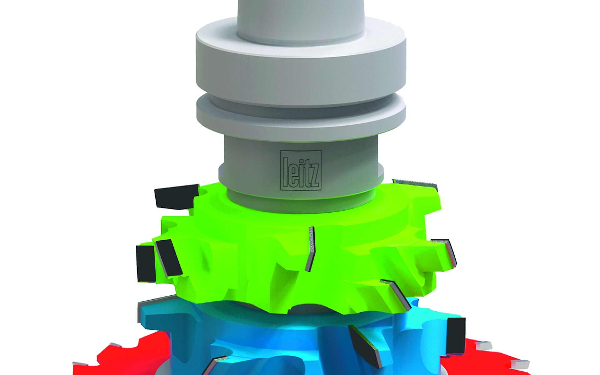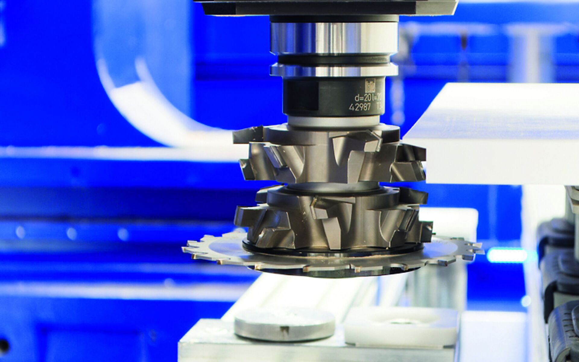 Stefan Richter de Leitz a reconnu que cela prenait beaucoup de temps. Il est en contact avec le directeur technique Heiko Ellersiek, le directeur de l'usine Gerhard Mormann et l'opérateur de la machine Matthias Tost. Richter visite souvent la production, discute avec les opérateurs de machines et voit où les choses peuvent être améliorées. Pour les barres de préhension, il a conçu un outil triple avec une fraise à profil diamanté à droite et à gauche ainsi qu'une scie à rainurer en carbure. Un manchon de serrage hydraulique maintient les trois outils partiels ensemble sur un arbre commun. Des collègues de l'usine Leitz d'Oberkochen ont conçu et fabriqué l'outil, tandis que Matthias Tost s'est occupé de la programmation CNC. Il a défini la scie à rainurer comme outil principal et les deux fraises à profil comme outils secondaires. Il a saisi les rayons et les longueurs d'outil dans la base de données des outils en fonction des données de mesure de Leitz.